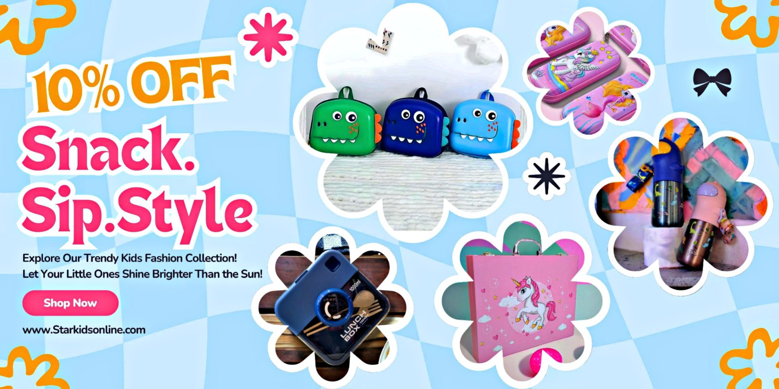 Our online kids’ accessories collection includes durable backpacks, spill-proof water bottles, and lunch boxes designed to keep your child organized and prepared for school.