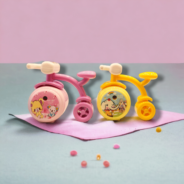 Add a spin of fun to study time with the Bicycle Spinner Sharpener for Kids—a creative twist on a school essential! Designed to look like a cute little bicycle, this sharpener features spinning wheels that make sharpening pencils both fun and functional. Its smooth, precise blades ensure perfect points every time, while the compact size makes it easy to carry in pencil cases or backpacks. Crafted from sturdy, child-safe materials, it’s perfect for school or home. A delightful way to keep pencils sharp and smiles brighter!