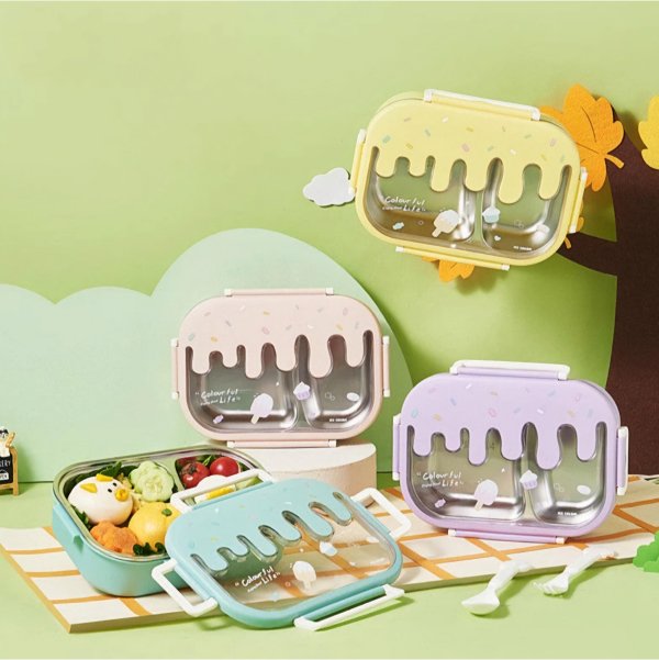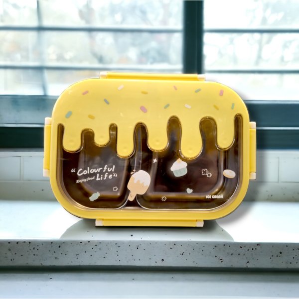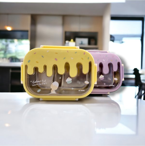 Introducing the Double Compartment Lunch Box with Melting Cupcake Design – where style meets functionality!