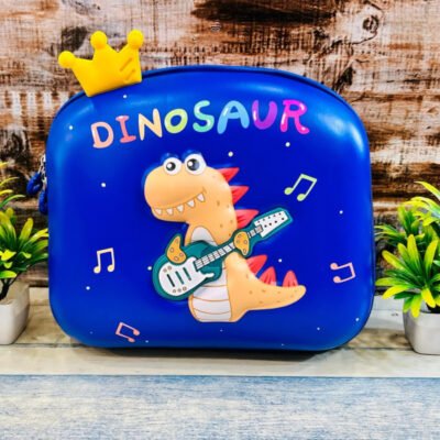 This vibrant blue backpack features a cute cartoon dinosaur face, making it irresistible for young adventurers.